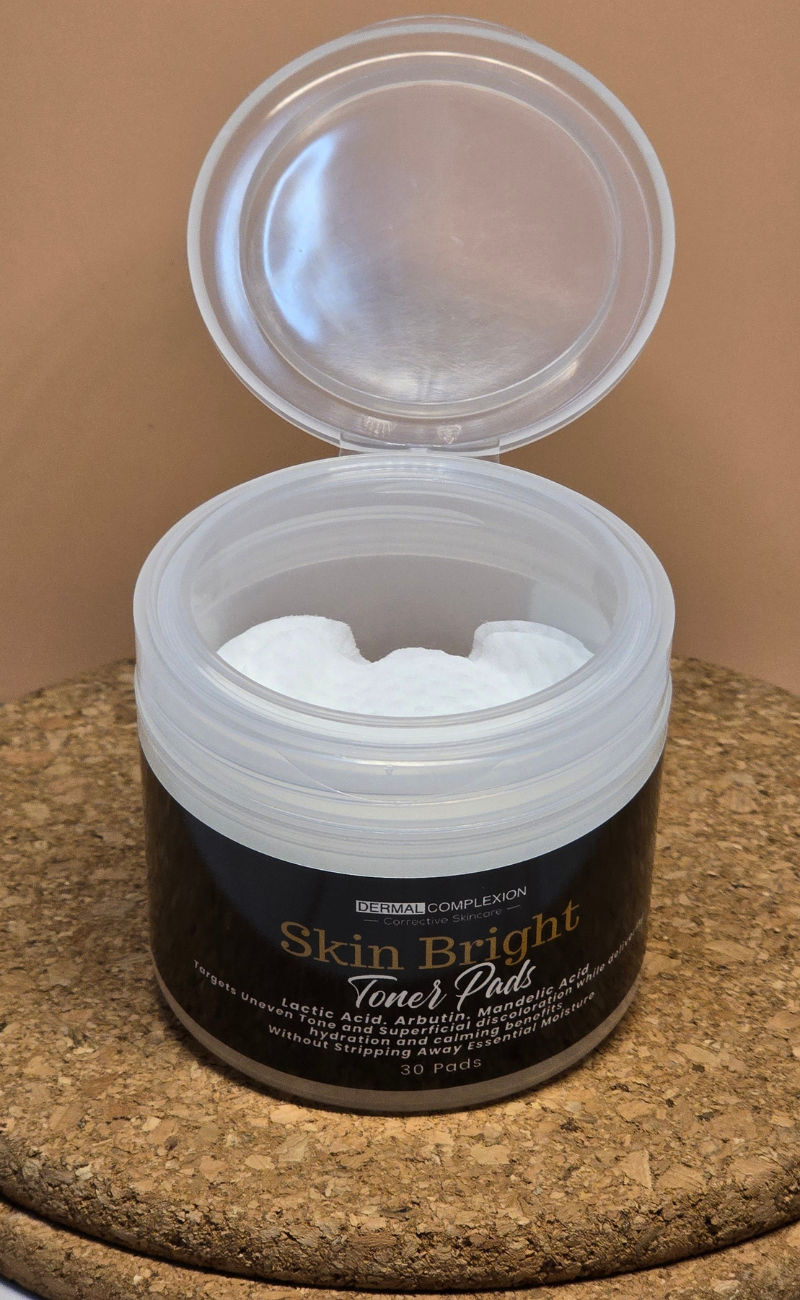 Refine and refresh your complexion with the Skin Bright Toner Pads—pre-soaked treatment pads infused with a powerful blend of exfoliating and brightening ingredients. Featuring Lactic Acid, Mandelic Acid, Glycolic Acid, and Phytic Acid, these pads gently remove dead skin cells, improve uneven tone, and smooth skin texture without irritation.